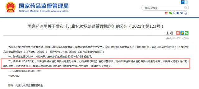 2022年5月1日起,申請注冊或者進(jìn)行備案的兒童化妝品,其標(biāo)簽必須標(biāo)示“小金盾”;此前申請注冊或者進(jìn)行備案的兒童化妝品,其標(biāo)簽應(yīng)當(dāng)在2023年5月1日前完成標(biāo)示“小金盾”。